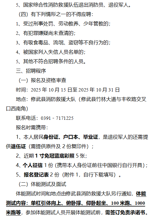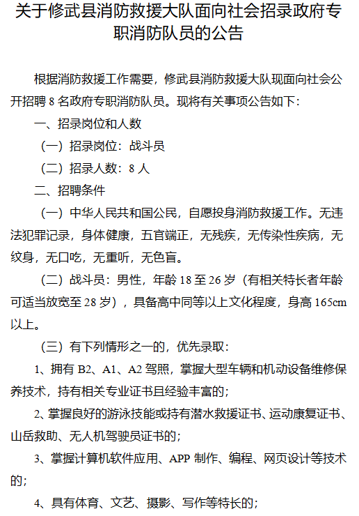 关于修武县消防救援大队面向社会招录政府专职消防队员的公告