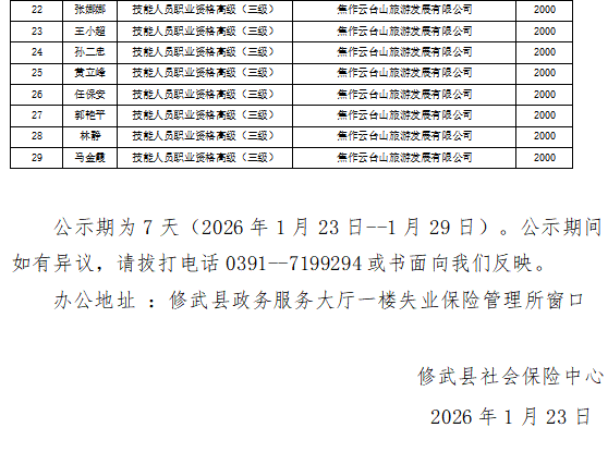 关于王文杰等29人申领职业技能提升补贴的公示