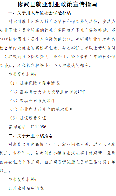 修武县就业创业政策宣传指南